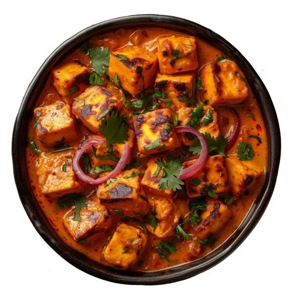 Soft paneer ke cubes doobe hue hain ek creamy, buttery aur cashew wali rich curry mein.
